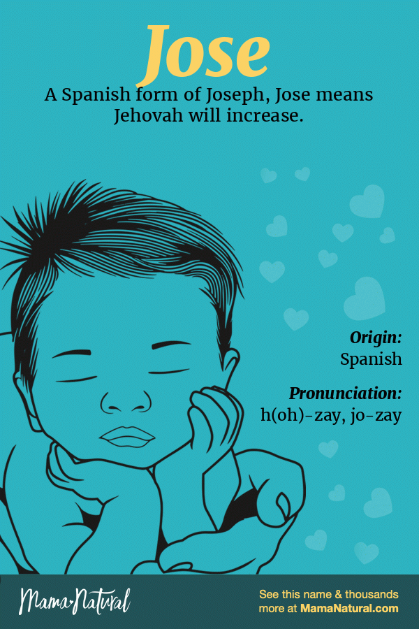 Infographic of Jose name meaning, which is A Spanish form of Joseph, Jose means Jehovah will increase.